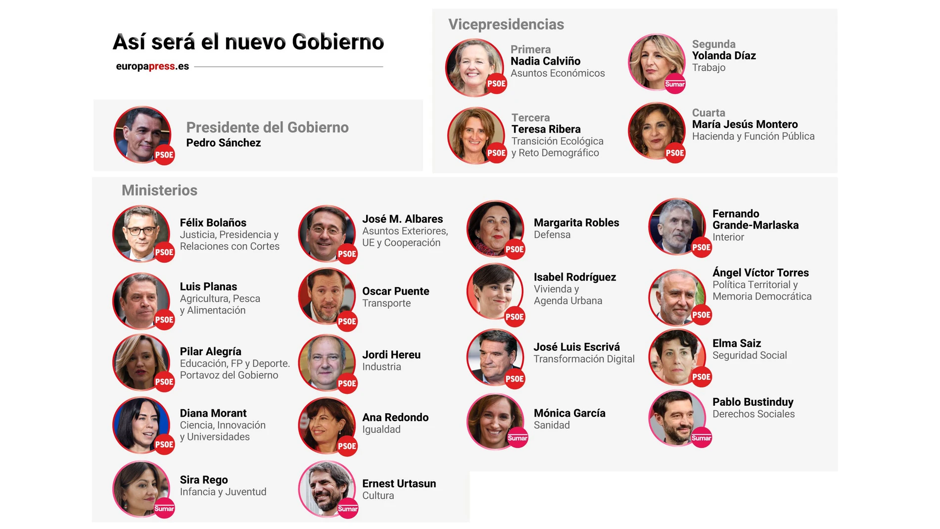 Diseña un gobierno de "contraataque" para afrontar una legislatura marcada por todas las presiones externas: la oposición de PP y Vox, los ataques de Podemos y los pulsos que Junts, ERC, PNV y Bildu